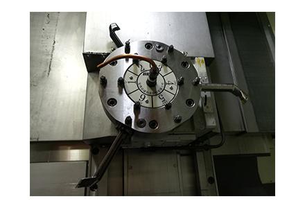4采用液壓轉(zhuǎn)臺(tái)實(shí)現(xiàn)B軸運(yùn)動(dòng),實(shí)現(xiàn)專用鵝頸刀具自動(dòng)進(jìn)刀,進(jìn)行差速器殼內(nèi)球面、內(nèi)階面的加工
